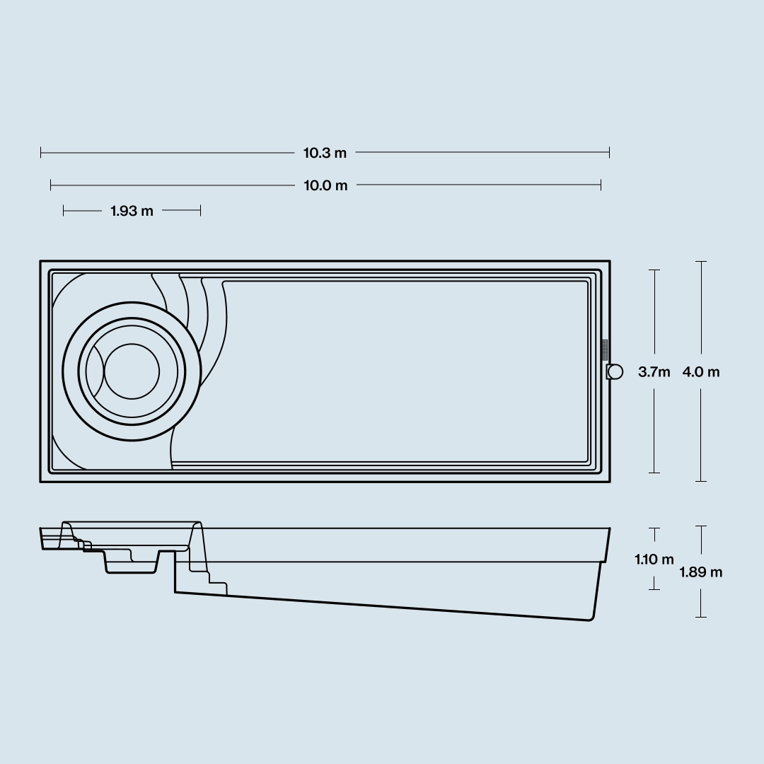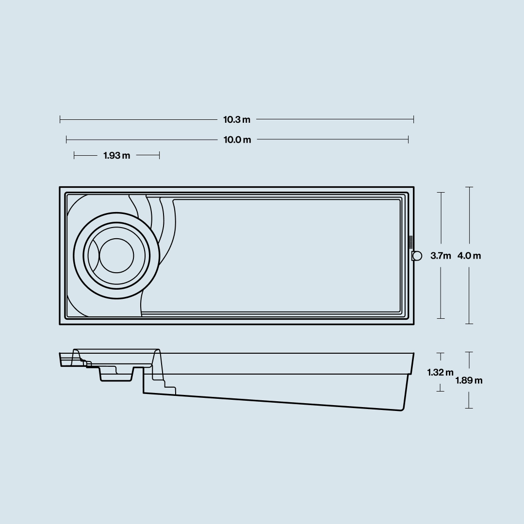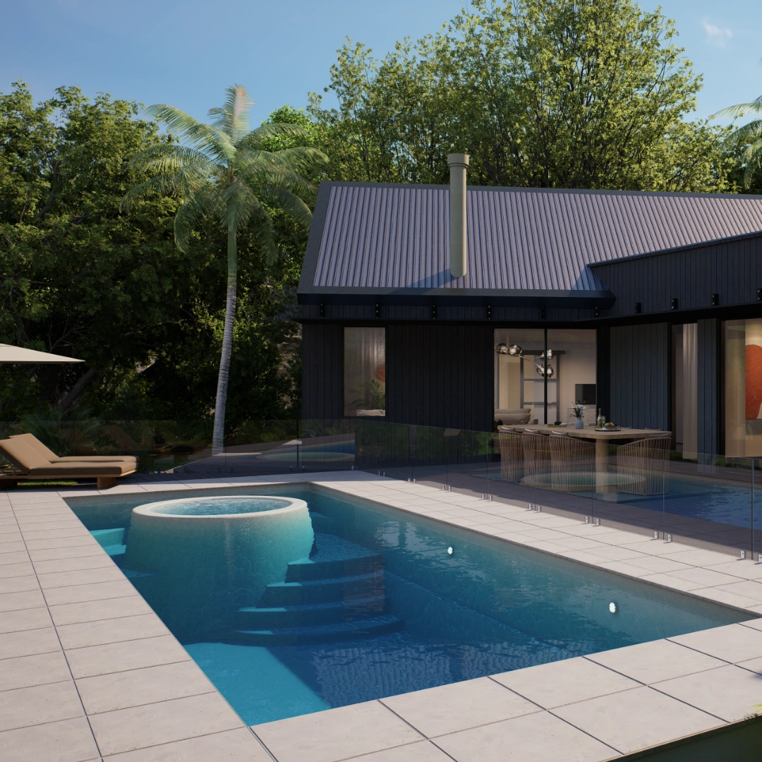 The Daylesford combines the best of both worlds - a spacious family pool with a spectacular circular spa seamlessly built in. Inbuilt steps flow directly from the spa into the pool, making the transition from soak to swim effortless. Available in 8.5m or 10m and in four of our most popular colours (Sparkling Grey, Glacier, Sandstone, and Pale Blue), it’s perfect for families who want relaxation and fun in one. Swim, play, or unwind- you'll never want to leave your backyard.