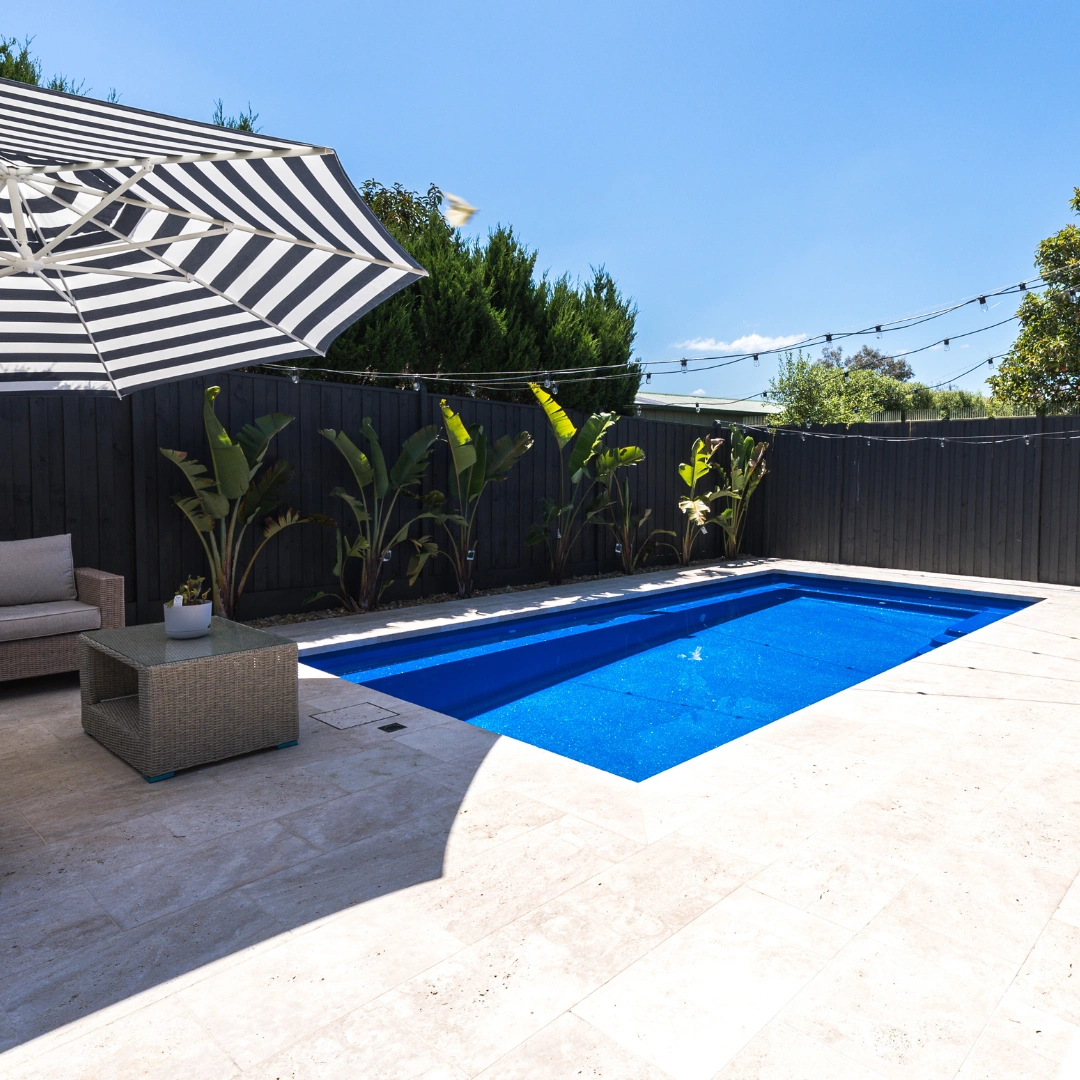 From the first splash to the last laugh - family memories start here. Introducing ‘The Flinders’, a fibreglass pool design tailored for young families. The full-length bench seat provides a safe area for children to play, while the easy-entry steps offer peace of mind. Its gentle sloping floor makes this pool suitable for swimming, fitness, and all water activities, creating an inviting backyard retreat where families can enjoy quality time together.
