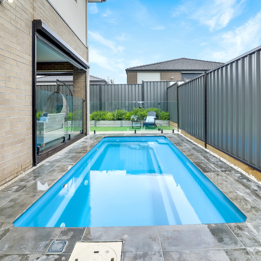 The Mishadel offers a vast area so you can ‘just keep swimming’ – perfect for laps, water play, and large gatherings. Its open design with discreet step configurations complements a variety of backyard layouts, making it ideal for families who love to entertain. This 9.3m by 4.5m pool allows you to enjoy an outdoor oasis where ample space meets timeless style!