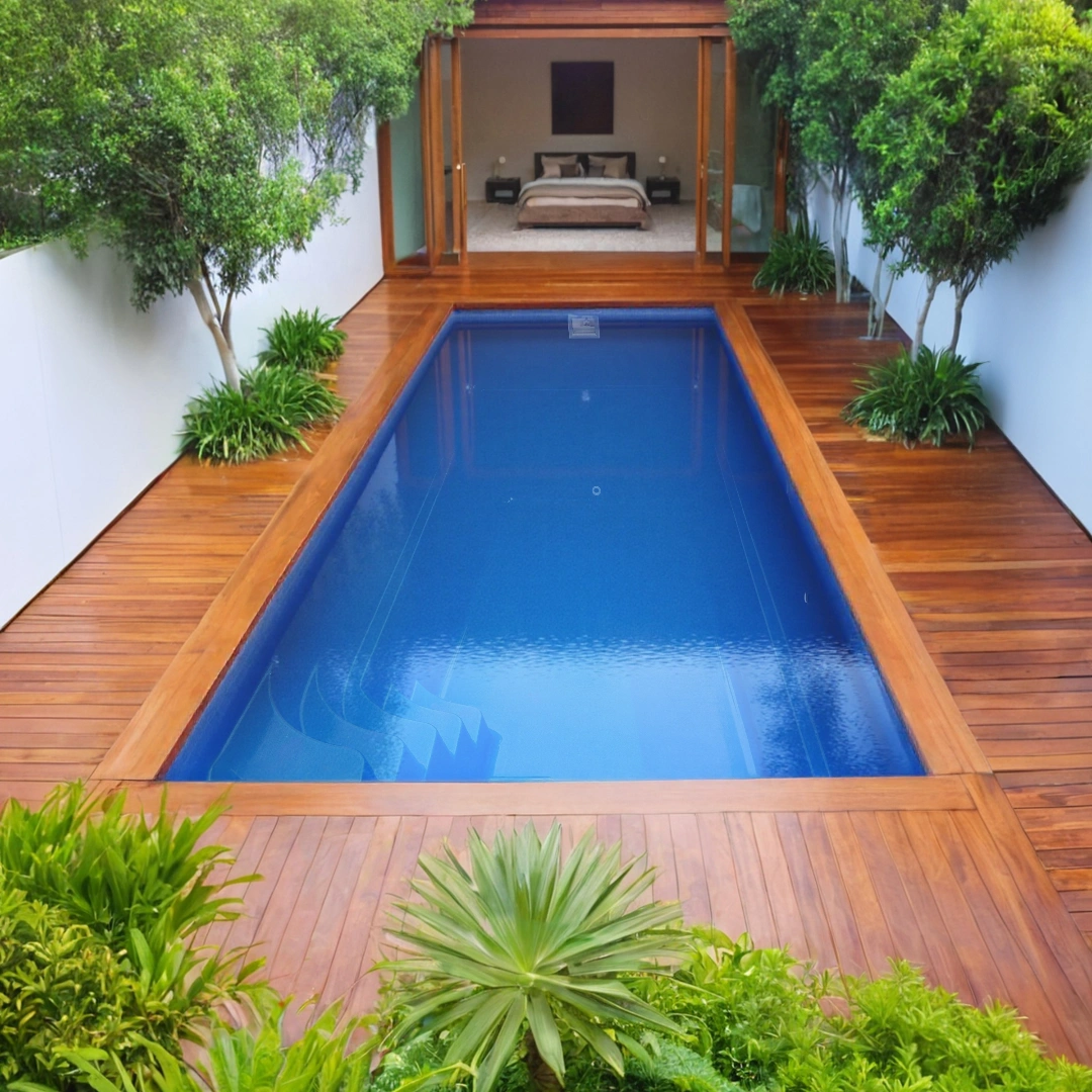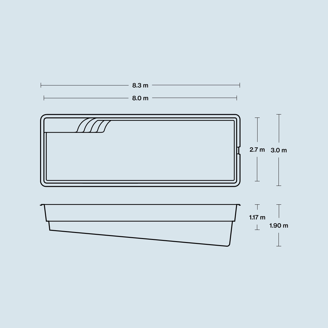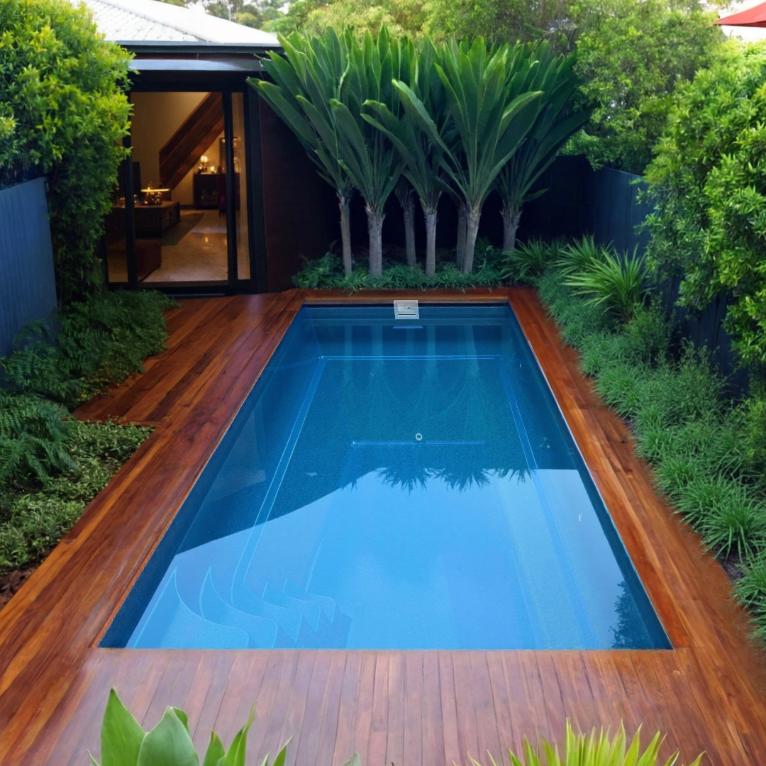 Discover the beauty of fibreglass pool designs with ‘The Sorrento’, a sleek pool that elevates your backyard with a minimalist rectangular aesthetic. The Sorrento will leave you swimming in compliments! This modern pool design features single-entry steps, maximizing swim space for relaxation, exercise, and family fun. The long bench seat invites comfortable lounging for adults, while the discreet safety rail enhances functionality without compromising style. The Sorrento will transform your backyard into a chic, serene escape that’s ideal for the modern Australian family.
