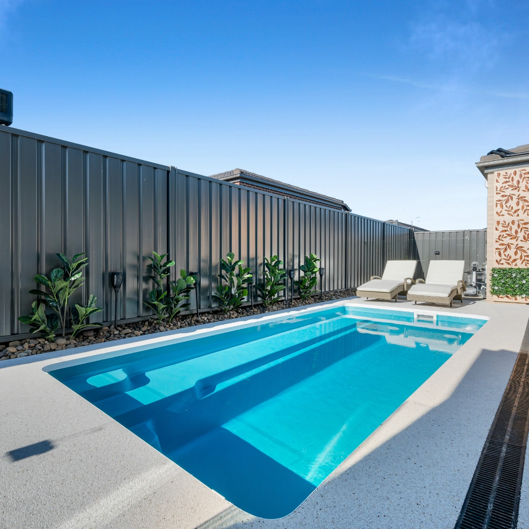The perfect blend of clever design and style, ‘The Taigen’ is Summertime Pools’ ideal all-rounder. Available in 5m and 9m sizes, it features a long bench seat and carefully arranged steps for easy access, making it an ideal choice for children, parties, and fitness enthusiasts. The Taigen’s sleek design combines contemporary pool design with function – the smart choice for maximising backyard enjoyment.