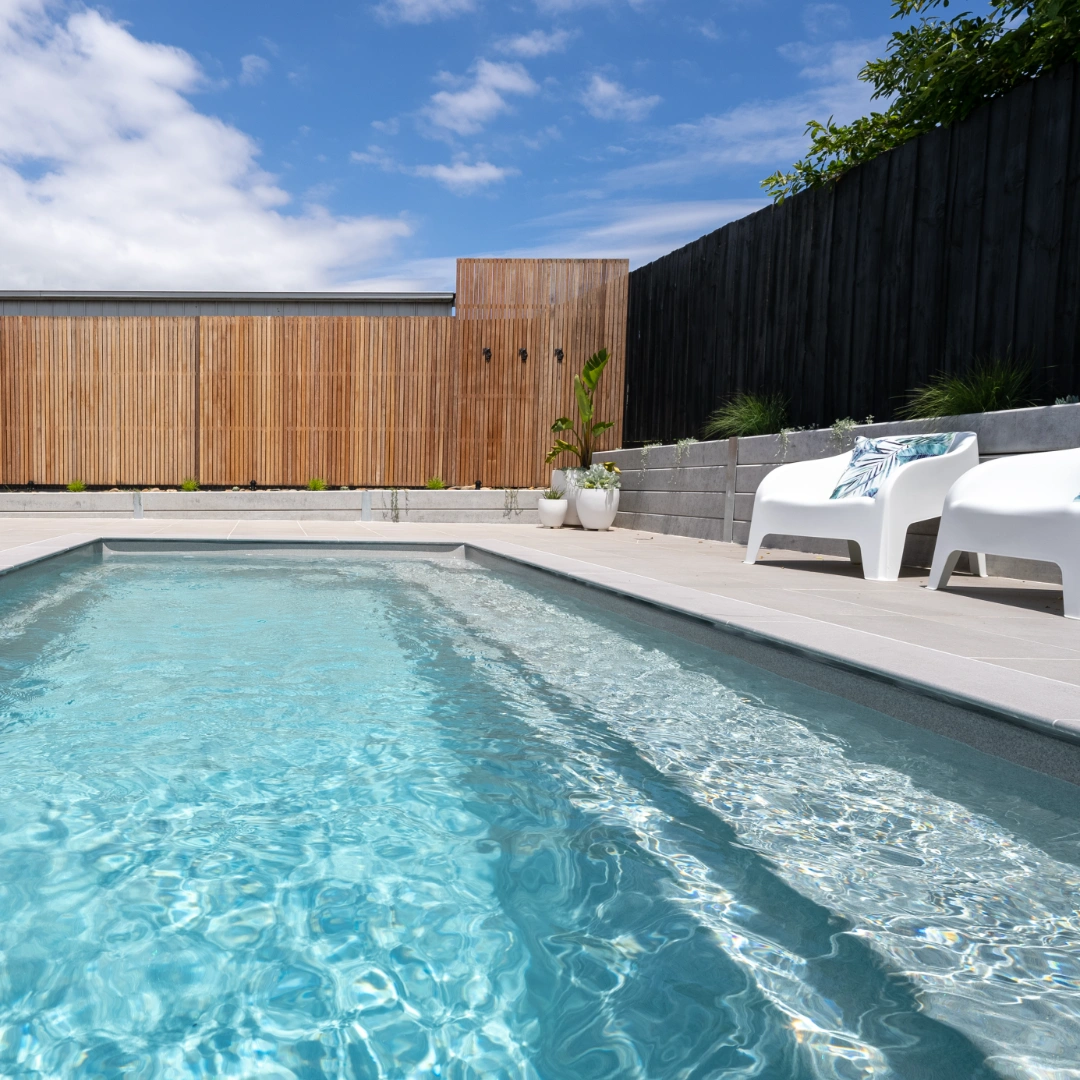 All pools include salt water sanitisation, hydrostatic valve, skimmer & jets, two LED lights, and our premium ChlorShield™ gelcoat finish. These “extras” are standard with us.